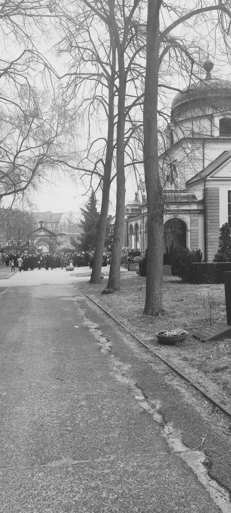 Ich bin immer noch erfroren. Beim Trauerfoto aus der Ferne kam ich mit einer lebhaften Dame (86) ins Gespräch. Sie besucht wöchentlich seit 12 Jahren ihren Sohn (einen von zwei), der in der Nähe von Henrike in einem Sammelgrab liegt. Sie deutete auf die Menschen vor Kapelle und meinte: „Da muss ein Politiker gestorben sein: so viele Trauergäste.“ Ich fror. Dann lenkte sie mich wunderbar ab und öffnete mir einen Weg in die Zukunft. Wir tauschten – in gebotener Kürze – unsere Lebensgeschichten aus, auch mit Trauer- und Friedhofsgeschichten. Sie deutete zur Seite auf ein Doppelgrab mit ‚Hells-Angels‘ (beide jünger als ich) und berichtete von der Bestattung mit Sondergenehmigung für Motorrad, aber: „Die Weihnachtsdeko müsste nun mal weg.“ (Sie gab den Angels keine Sondergenehmigiung für die Grabpflege.). Später sah ich auf dem Weg zu Henrike Rudolf Virchow (auch einer, der ‚ungezwungen‘ politische Verantwortung übernahm und von Bismarck zum Duell gefordert wurde). Noch später erfuhr ich von Rio Reiser und den Grimmbrüdern in der Nähe. Und schließlich von Alex Kobylinski (Wolfgang-Schnur-Buch) neben Henrike, einem meiner weiteren tragischen Helden. Ich fror.